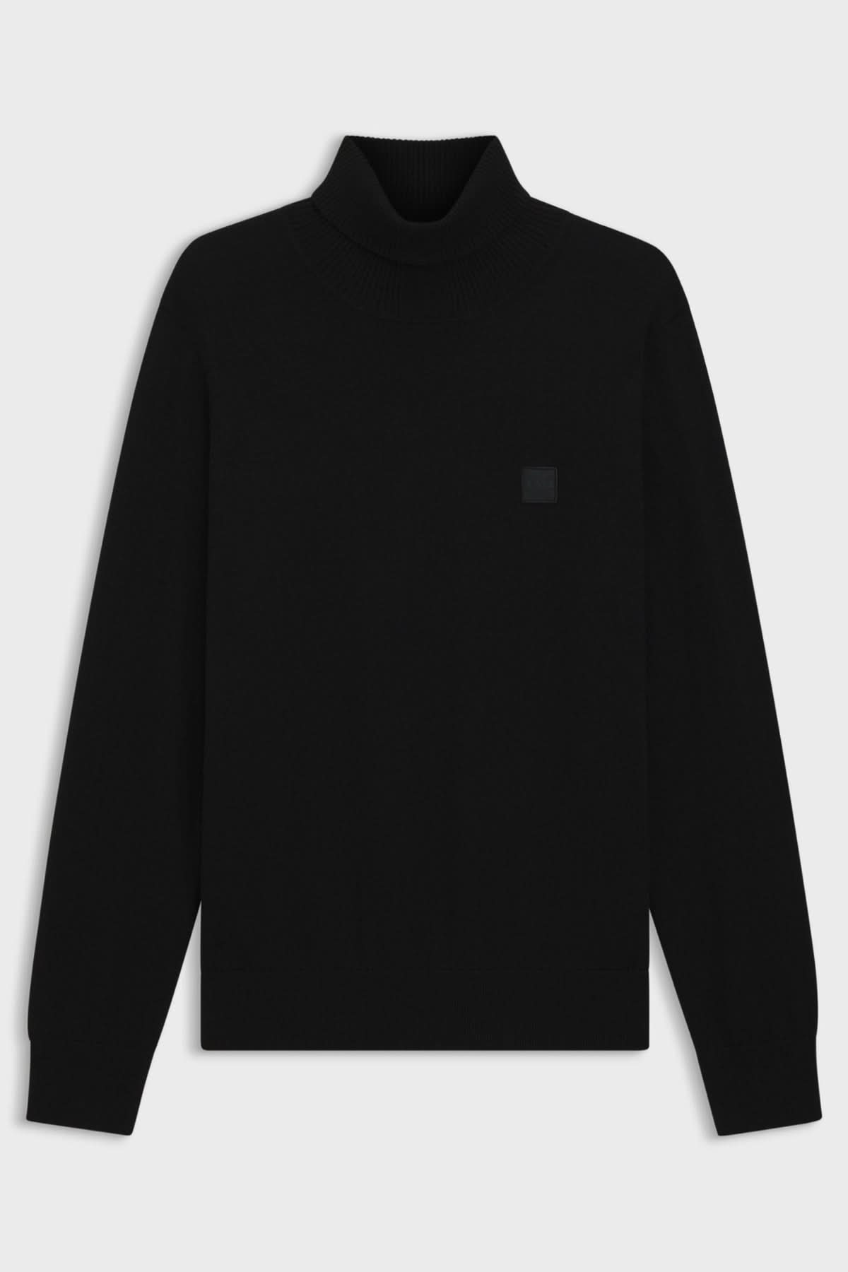 Homme portant col roulé coton et cachemire Boss Orange noir, allure moderne et élégante.