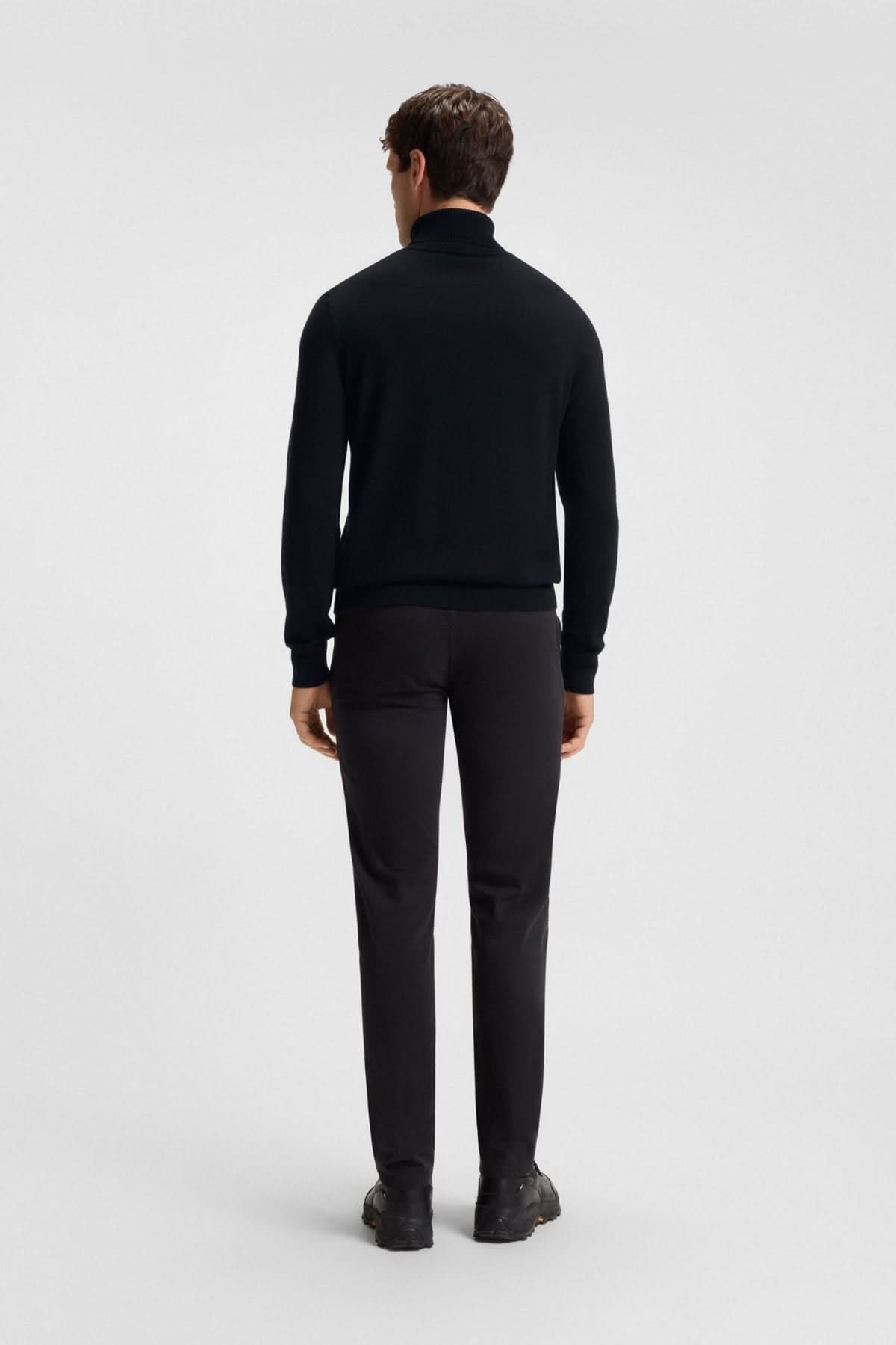 Homme portant un col roulé coton et cachemire Boss Orange noir avec pantalons habillés, vue de dos pour un look élégant et moderne.