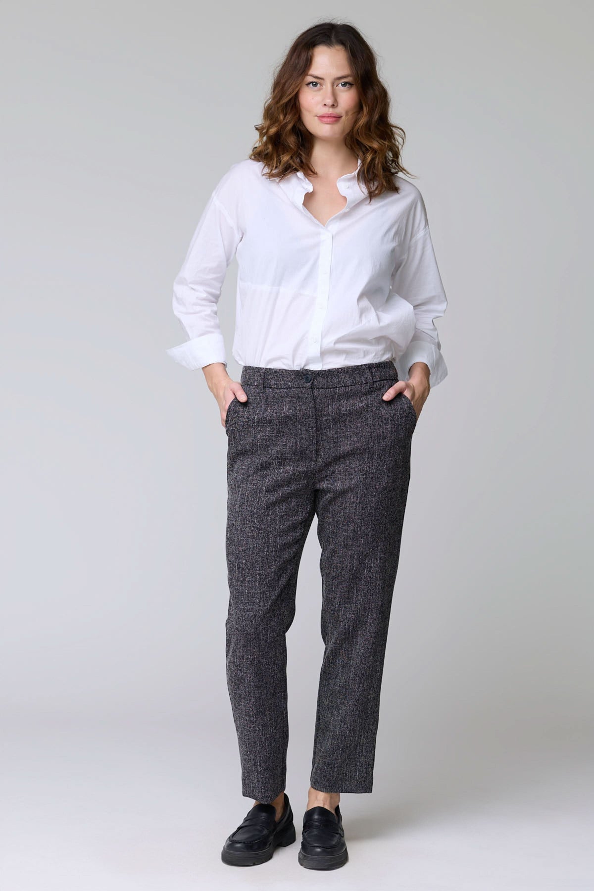 Description : Ce pantalon à motif texturé combine élégance et confort avec sa coupe droite et son tissu extensible. Parfait pour le bureau ou les sorties, il apporte une touche raffinée à toute tenue.