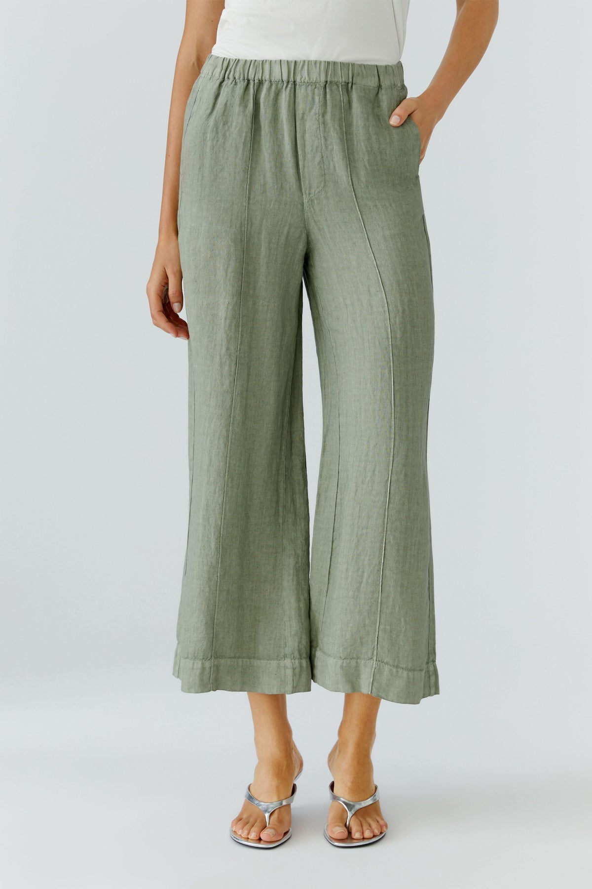 Pantalon en lin à la coupe fluide, parfait pour un confort léger au quotidien. Sa taille élastiquée assure un ajustement facile et une liberté de mouvement optimale. Sa silhouette à jambe large apporte une allure moderne et décontractée.