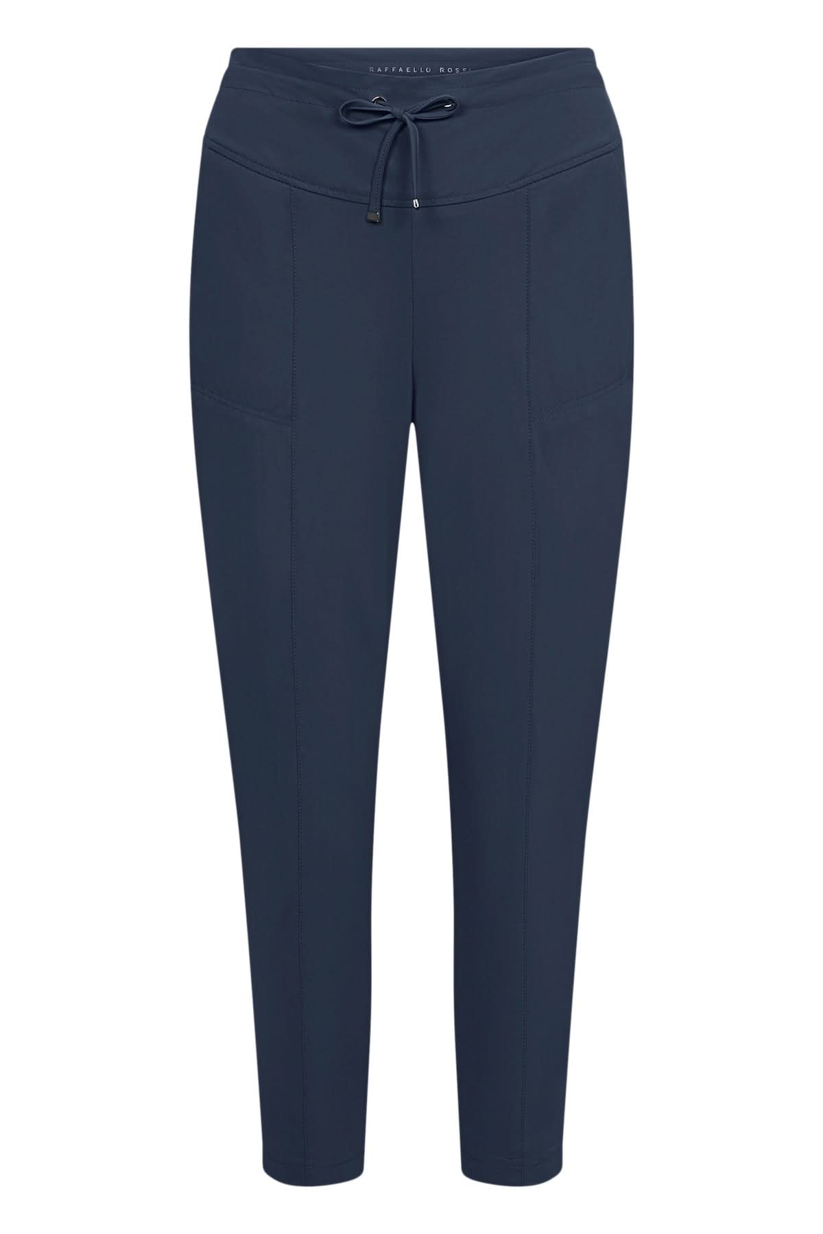 Pantalon habillé Azra, extensible, taille haute, poches pratiques, coupe ajustée, couleur bleu marine.