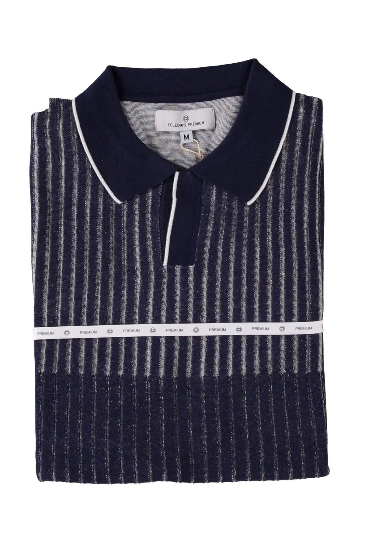 Description : Un polo raffiné à manches courtes qui revisite le style rétro avec ses rayures texturées en dégradé vertical. Son col classique et sa maille légère en font un choix élégant pour les journées d'été. Parfait avec un pantalon habillé ou un short structuré pour une allure soignée et actuelle.