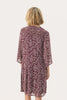 Derrière de la Robe Elka avec imprimé délicat et manches trois-quarts, coupe évasée et encolure en V pour un look élégant.