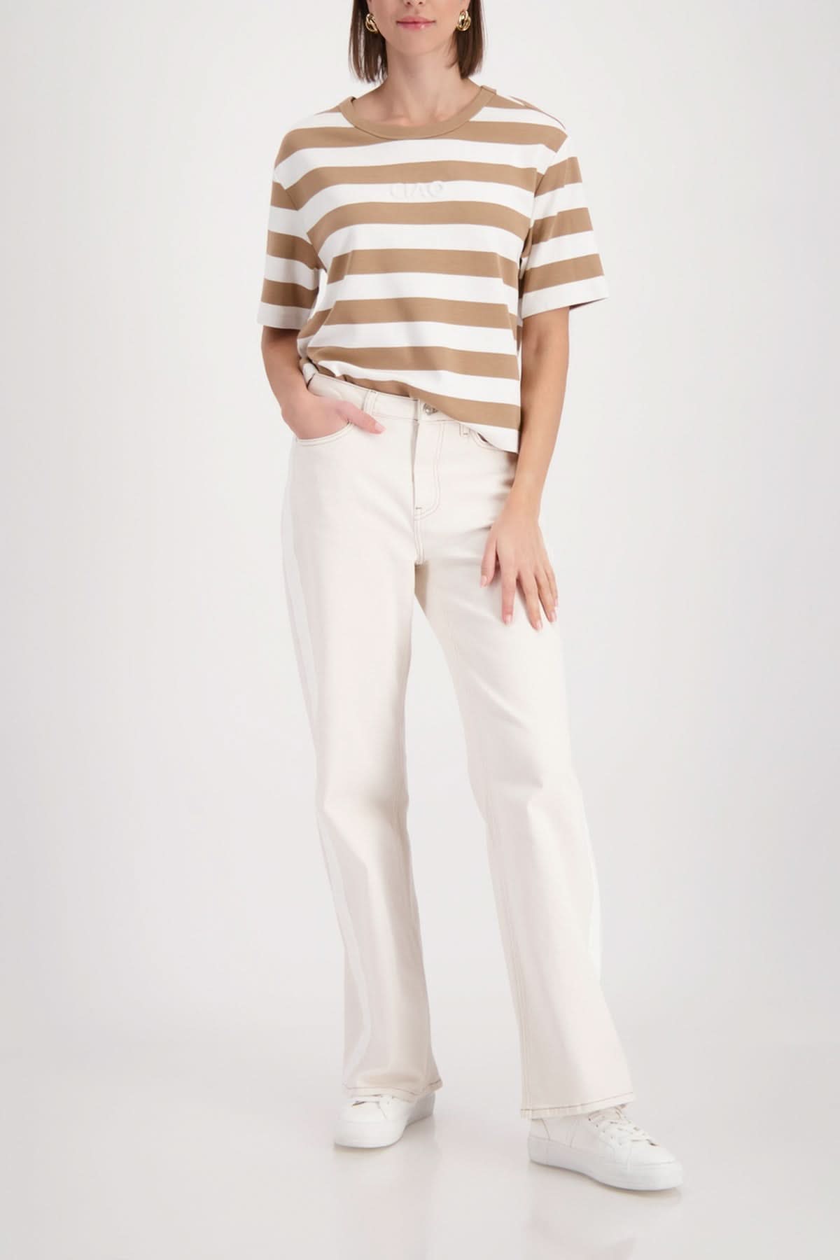 Description : T-shirt à manches courtes au design rayé avec logo embossé ton sur ton pour une touche signature subtile. Sa coupe décontractée et son tissu doux assurent un confort optimal au quotidien. Une pièce polyvalente qui s’intègre facilement à une garde-robe casual chic.