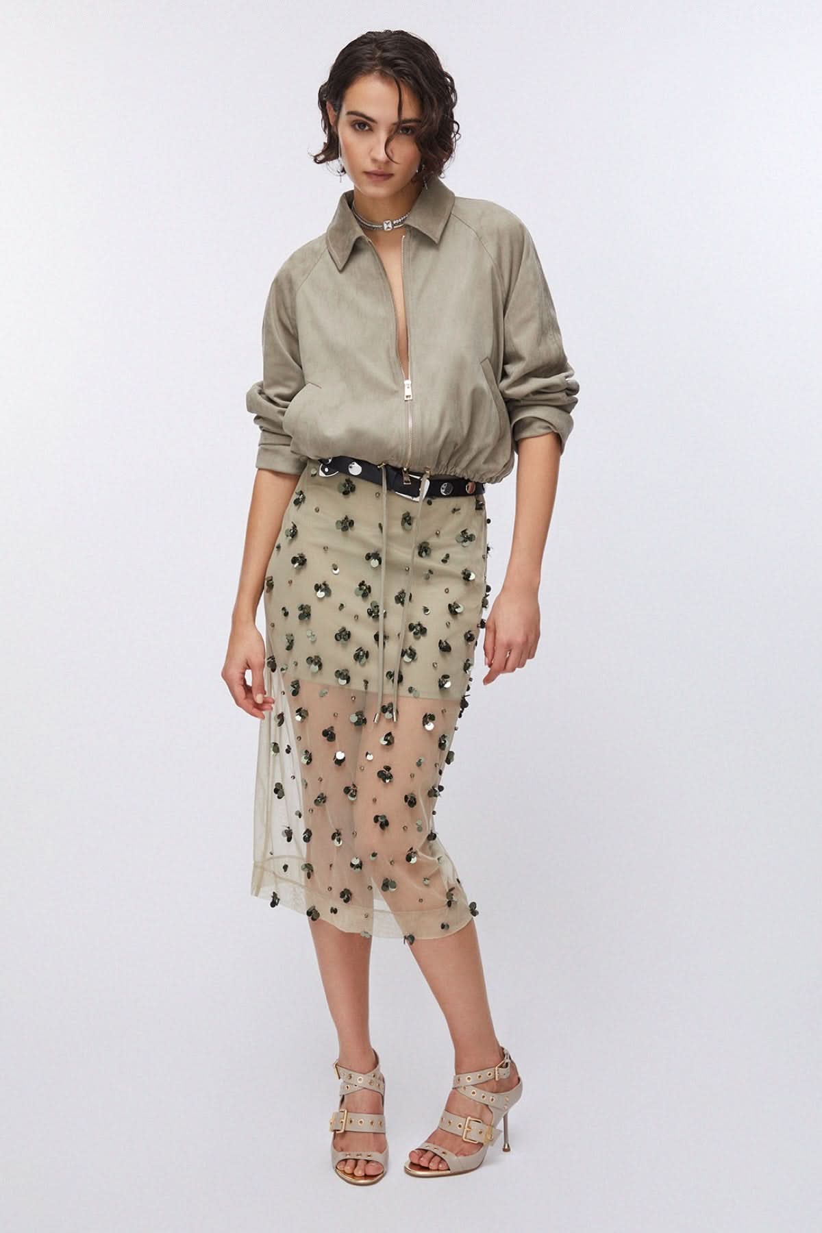 • Le mannequin mesure 180 cm et porte une taille 40.
