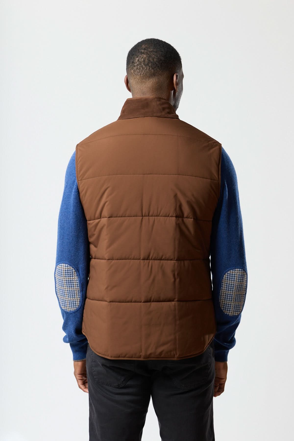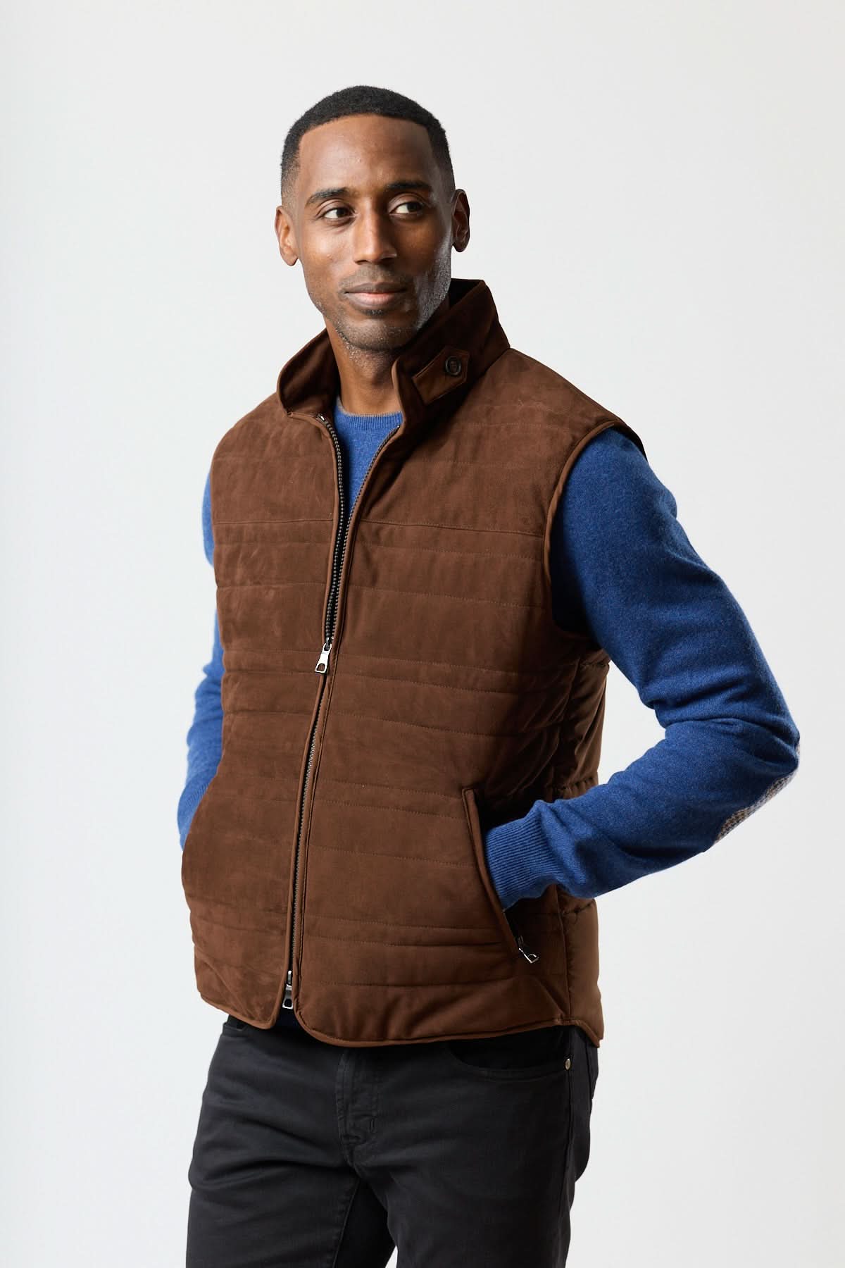 Description : Cette veste sans manches Waterville se distingue par son allure raffinée et contemporaine. Confectionnée en simili suédé doux à l’avant et en tissu lisse contrastant à l’arrière, elle allie élégance et praticité. Légèrement matelassée, elle offre confort et chaleur tout en conservant une silhouette structurée. Parfaite pour compléter un chandail en laine ou une chemise, elle s’impose comme une pièce incontournable du vestiaire masculin.