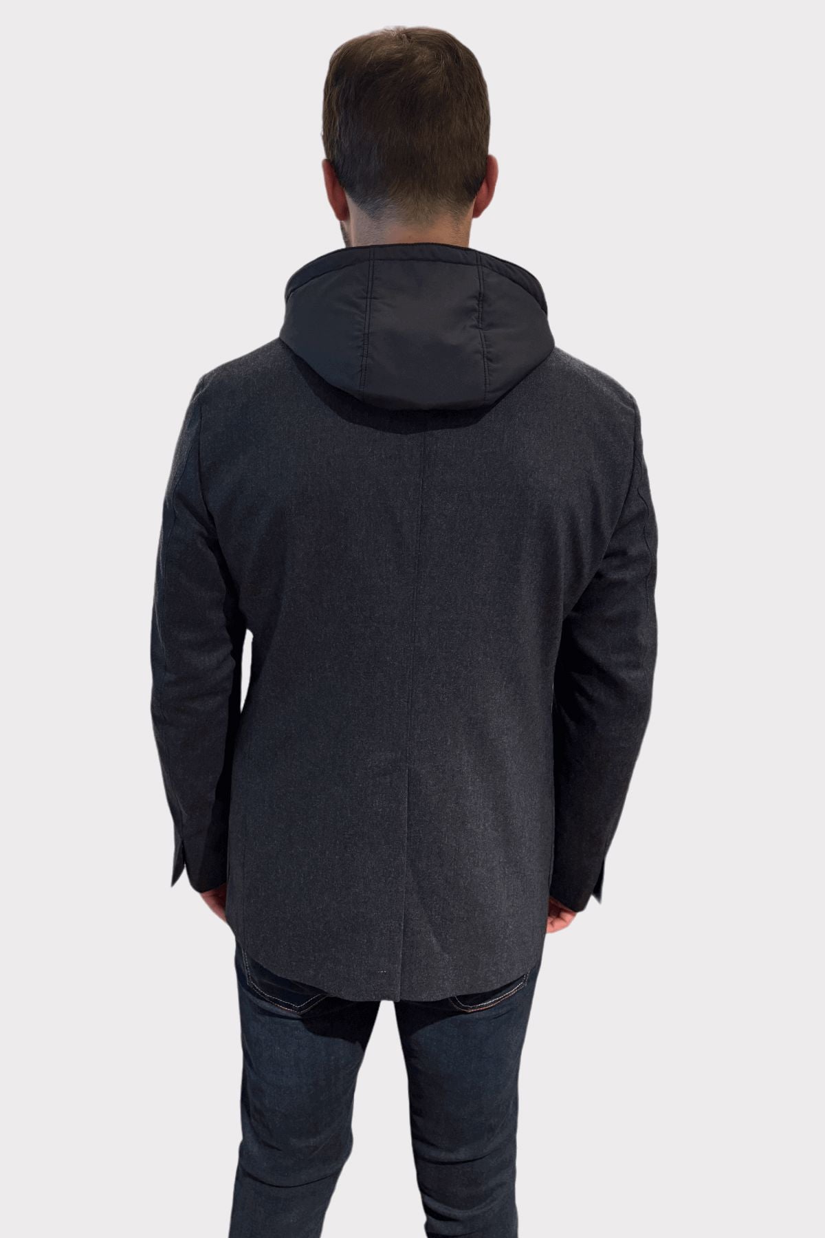 Ce veston gris moderne intègre une capuche amovible qui apporte une touche sportive à une pièce traditionnelle. Parfait pour ceux qui cherchent à allier élégance et fonctionnalité, ce veston se distingue par sa polyvalence et son design innovant. La coupe ajustée met en valeur la silhouette, tandis que la capuche ajoute une protection supplémentaire contre les intempéries tout en apportant une note décontractée.