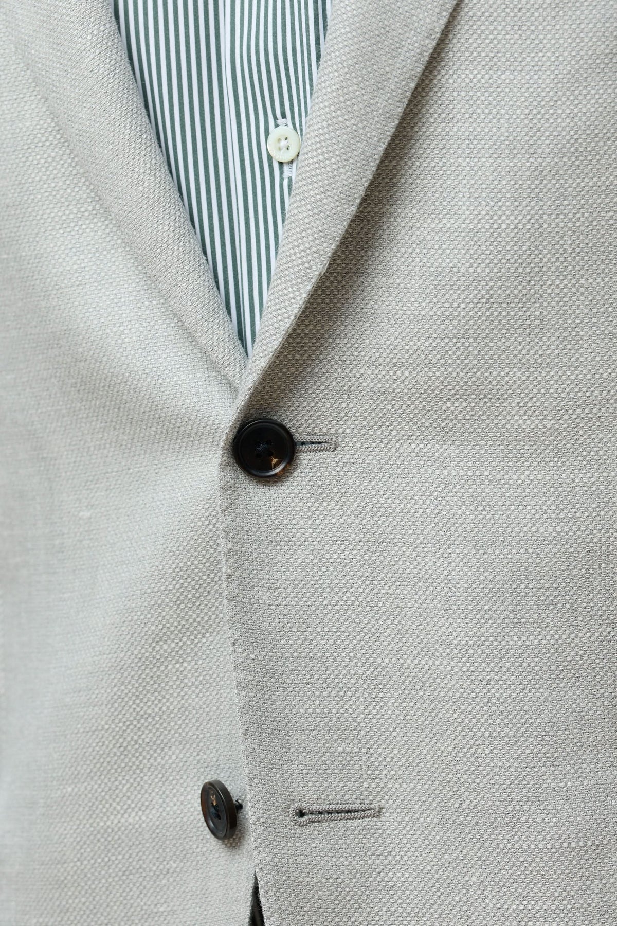 Veston à la coupe ajustée offrant une allure élégante et contemporaine. Son tissu texturé enrichi de fibres naturelles apporte profondeur et raffinement, tout en conservant une grande légèreté au porter. Une pièce polyvalente, idéale pour rehausser un look décontracté chic ou compléter une tenue plus habillée.